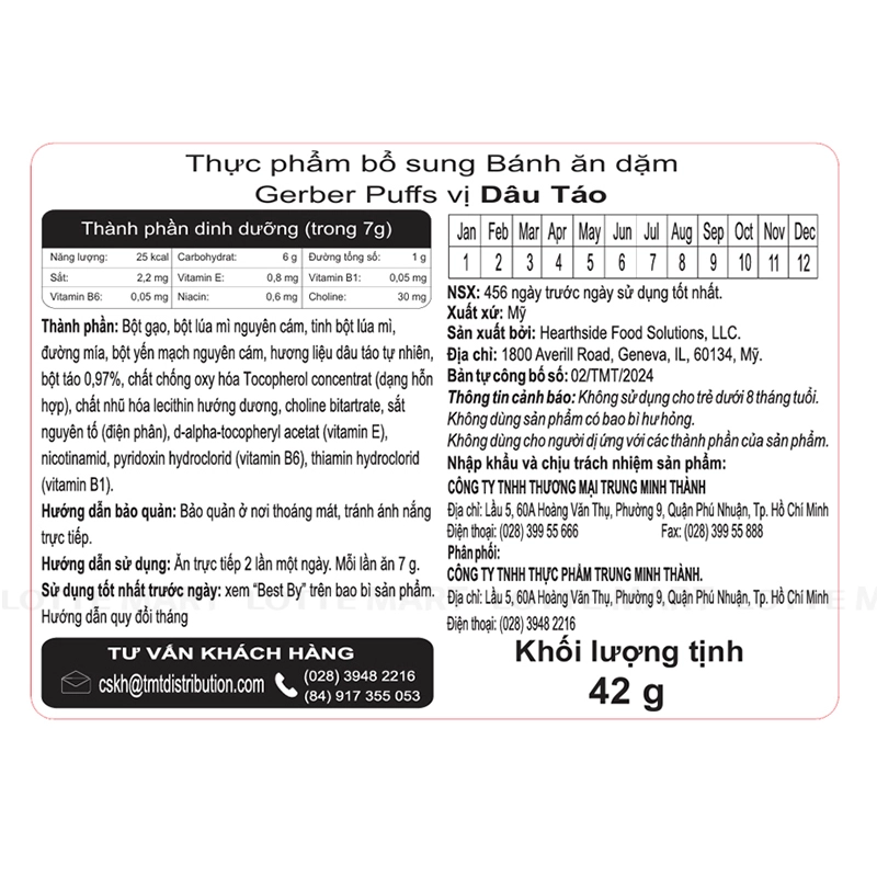 - Bánh ăn dặm Gerber được sử dụng trực tiếp, cho bé ăn dặm cách bữa ăn chính 2-3 giờ để bé không bị chán ăn, biếng ăn.