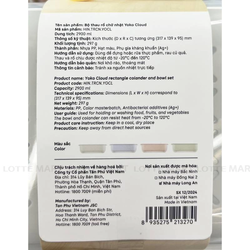 Bộ Thau Rổ Chữ Nhật Inochi Yoko Cloud 31.7x13.9x9.5cm (Giao Màu Ngẫu Nhiên)