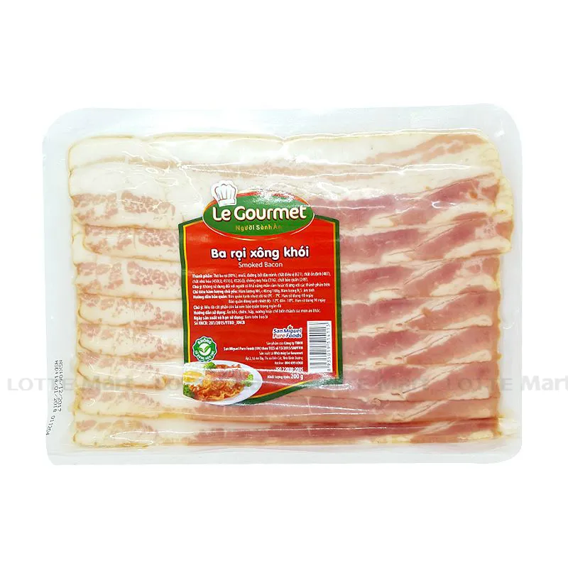 Ba Rọi Xông Khói Le Gourmet là lựa chọn tuyệt vời khi không có quá nhiều thời gian chế biến cho bữa ăn gia đình. Sản phẩm với thành phần chính gồm ba rọi, muối, đường... mang tới hương vị thơm ngon, hấp dẫn và giúp cung cấp đầy đủ dinh dưỡng cũng như năng lượng cần thiết cho bữa ăn.