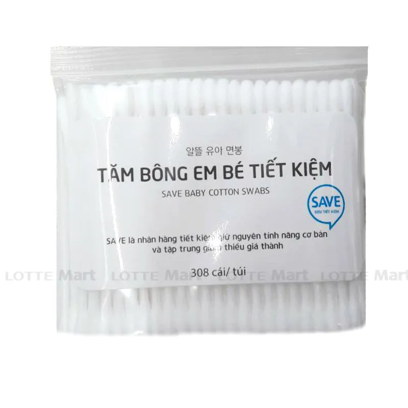 Tăm bông được đóng gói và bảo quản trong túi với số lượng tăm bông nhiều hơn, cho thời gian sử dụng lâu hơn. Túi nhựa kín đáo giúp giữ tăm bông không bị bụi bẩn hay nhiễm khuẩn có thể gây hại cho bé.