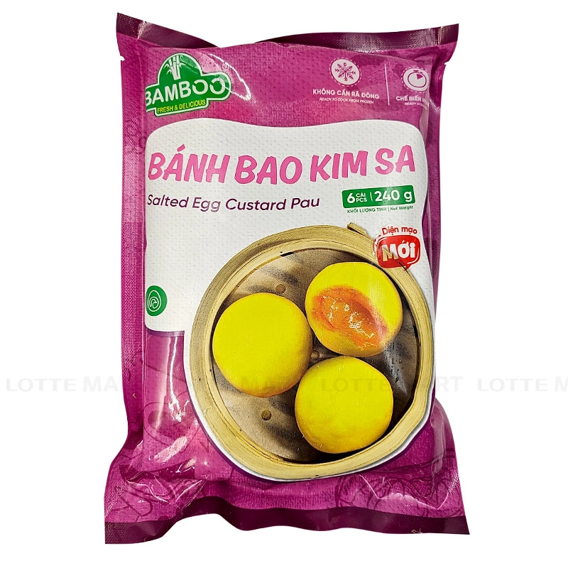 Bánh bao Kim Sa Bamboo lạ mắt và lạ miệng bởi sự kết hợp độc đáo của màu sắc và nguyên liệu tạo bánh theo công thức riêng. Bánh có lớp bột áo mềm mại, thơm ngon. Nhân bánh gồm trứng muối và trứng sữa hòa quyện cùng nhau, tạo nên phần nhân tan chảy mỗi khi thưởng thức.
