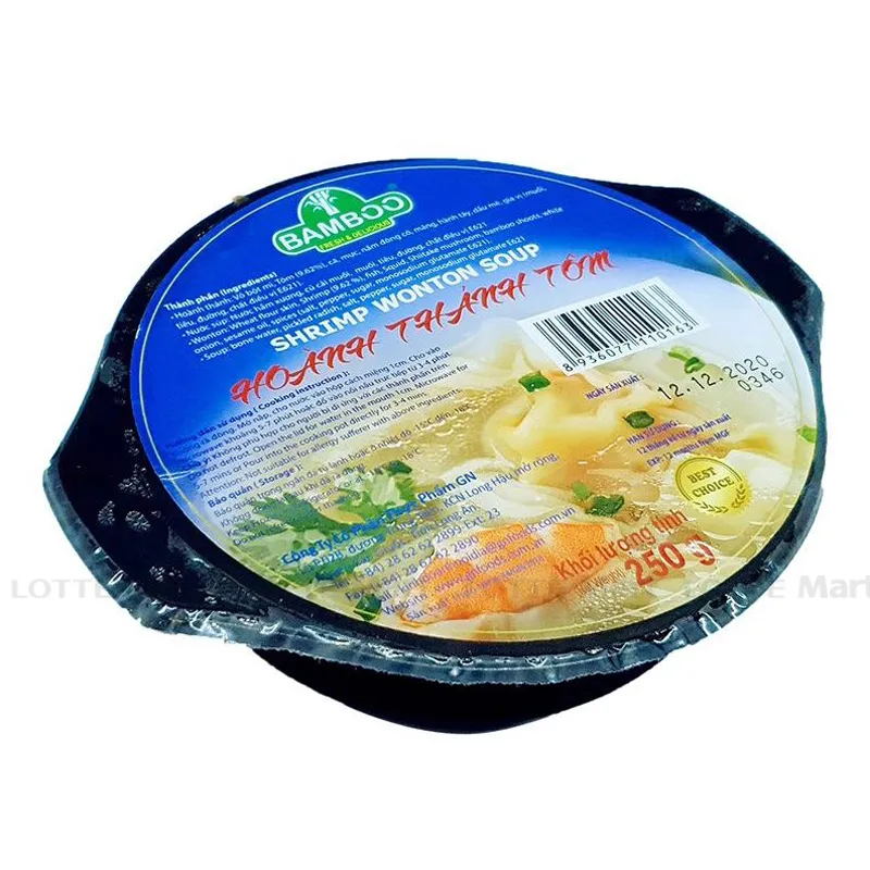 Cách chế biến: Mở nắp sản phẩm và cho toàn bộ hoành thánh cùng nước soup vào nồi nấu từ 3-4 phút đên khi nước sôi và sản phẩm nóng hoàn toàn. Có thể cho thêm các loại rau tùy thích vào cùng thưởng thức.