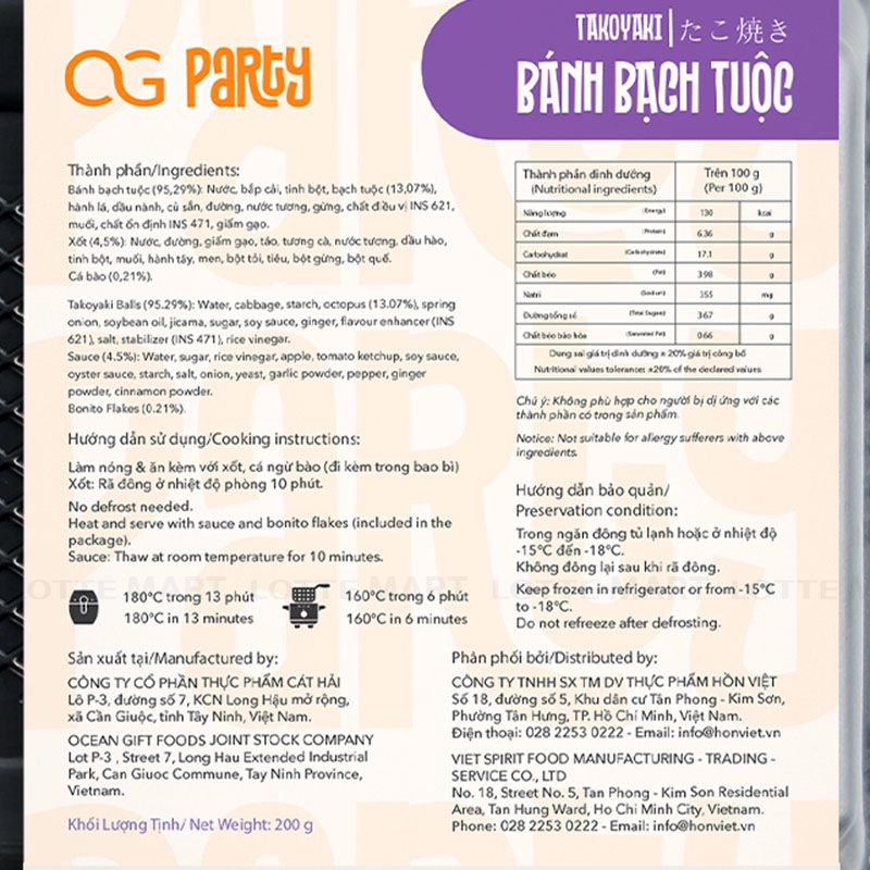 - Bánh Bạch Tuộc OG Party là lựa chọn lý tưởng dành cho những ai muốn thưởng thức món takoyaki chuẩn vị Nhật ngay tại nhà một cách nhanh chóng và tiện lợi.