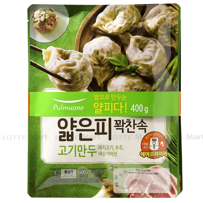 Để có thể tạo ra bánh bao vỏ mỏng ngon như ngoài hàng, Pulmuone đã nghiên cứu một năm để nhận ra một lớp vỏ bánh bao mỏng. Cuối cùng, vỏ bánh bao càng mỏng càng tốt, nhưng không dễ bị rách, có hể được sử dụng trong các món ăn khác nhau đã được ra đời.Bánh Bao Vỏ Mỏng Nhân Thịt Pulmuone với đặc trưng là vỏ mỏng chỉ 0.7mm, nhiều thịt, chắc chắn sẽ mang lại cho bạn và gia đình một bữa ăn đầy hấp dẫn mà không bị ngán.