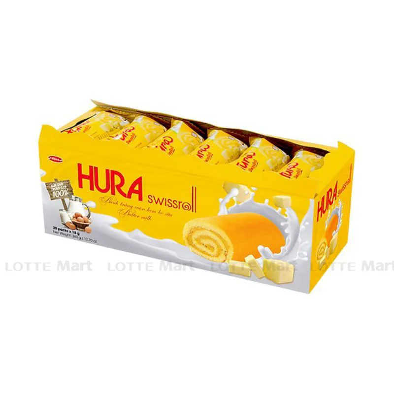 Bánh Trứng Cuộn Kem Bơ Sữa Hura Swissroll Hộp 360G