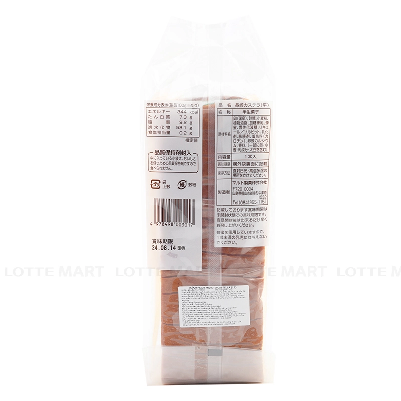 - Bánh Bông Lan Maruto Cast Gói 191G là dòng bánh ngọt đóng gói nổi tiếng đến từ thương hiệu bánh Nhật Bản được nhiều người ưa thích. Món bánh với phần ruột mịn xốp, độ dai đặc trưng, hương thơm hảo hạng của mật ong. Bánh có vị thơm mà không ngấy, các bé sẽ rất thích nó như một bữa ăn dặm tuyệt hảo.