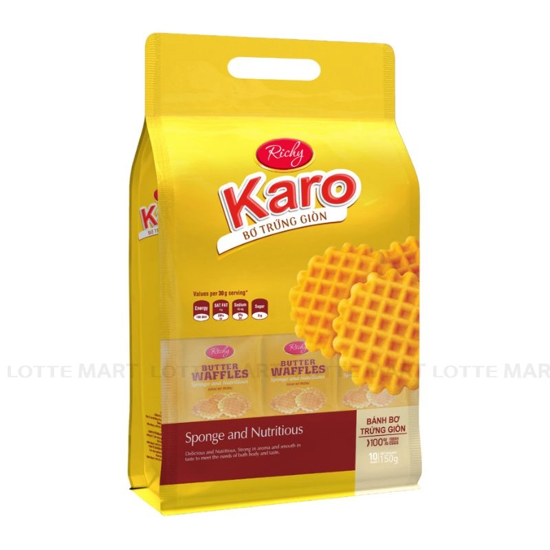 Bánh Karo Richy bơ trứng giòn 150g là sản phẩm bán chạy trên thị trường do nguyên liệu và thành phẩm tuyệt đối đảm bảo, giá thành phù hợp, là sự lựa chọn chính xác của người tiêu dùng.