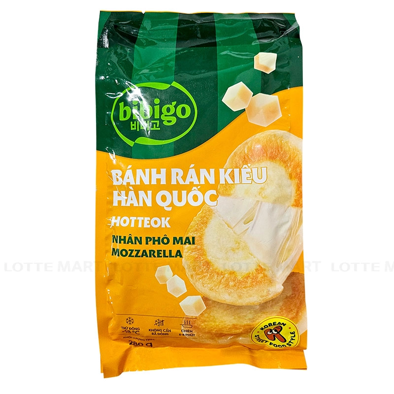 - Bánh Rán Kiểu Hàn Quốc Nhân Mozzarella bibigo là món ăn tiện lợi với lớp vỏ bánh mềm dai, chiên lên vàng nhẹ, hòa quyện cùng nhân phô mai mozzarella kéo sợi béo ngậy.