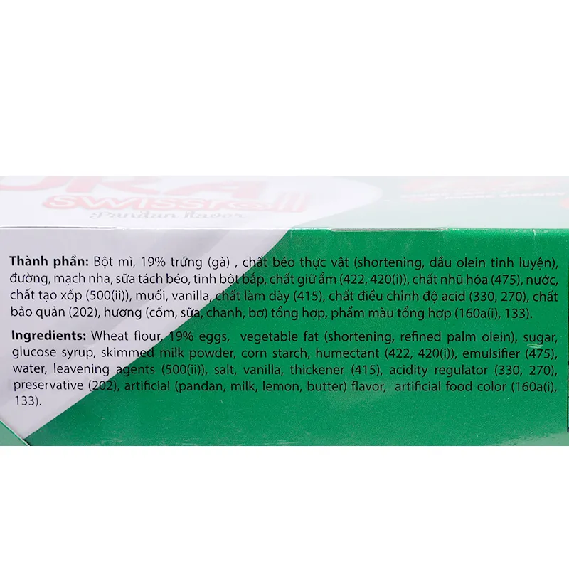 - Sản phẩm được làm từ các thành phần tự nhiên như bột mì, đường, trứng, chất béo thực vật, mạch nha, tinh bột bắp, sữa bột, bơ, muối, hương tổng hợp, …