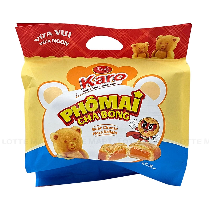 - Bánh Gấu Phô Mai Chà Bông Karo không chỉ thu hút ánh nhìn với hình dáng chú gấu xinh xắn, mà còn mang đến cảm giác dễ thương ngay từ lần đầu tiên thưởng thức. Thiết kế độc đáo của chiếc bánh khiến nó trở thành món ăn vặt hấp dẫn không chỉ cho trẻ nhỏ mà còn cho cả người lớn, tạo nên những khoảnh khắc vui vẻ và đáng nhớ.