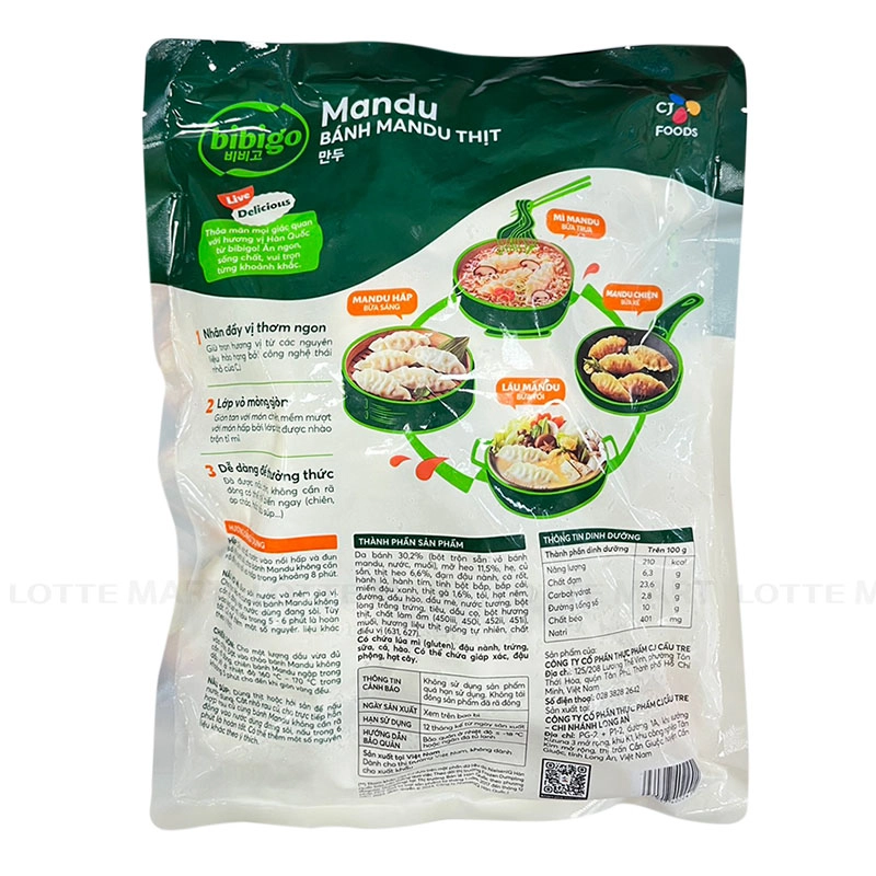 - Bánh Xếp Mandu bibigo Thịt mang tinh hoa ẩm thực Hàn Quốc đến căn bếp của bạn với lớp vỏ mỏng gợn sóng, mềm dai và phần nhân đậm đà gồm thịt heo cùng rau củ được ướp gia vị tinh tế. Sản phẩm đã được làm chín sẵn, chỉ cần vài phút là có ngay món Mandu nóng giòn, thơm ngon.