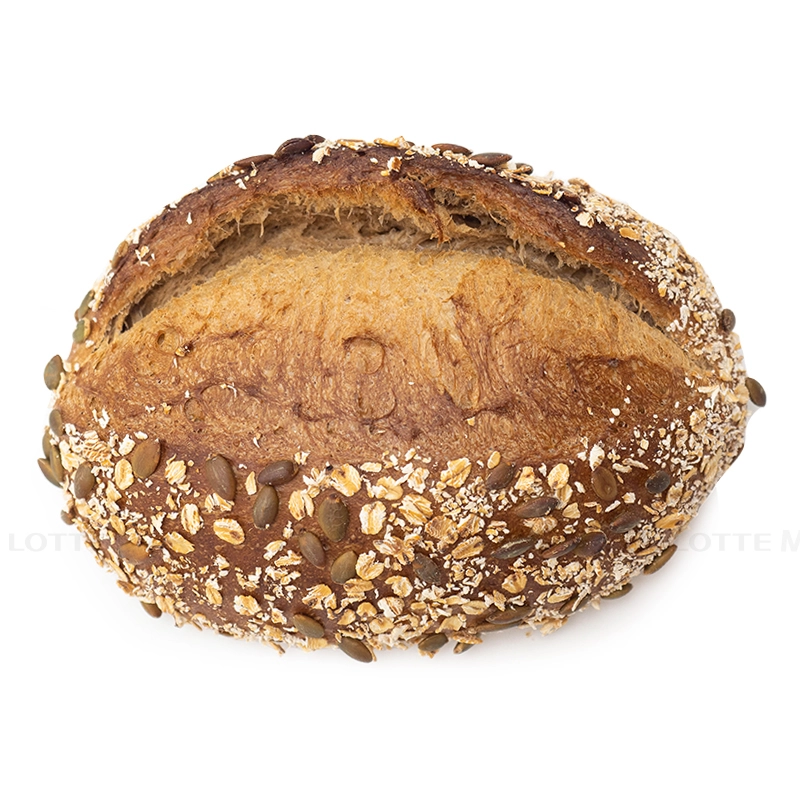 Thành phần: Bột mì, đường trắng, nước, bột Dark Rye, đường trắng, nước, muối tinh, bột sữa, men khô, bơ lạt, yến mạch, hạt bí.