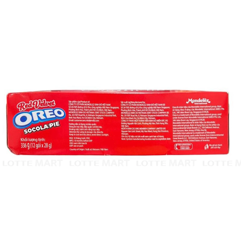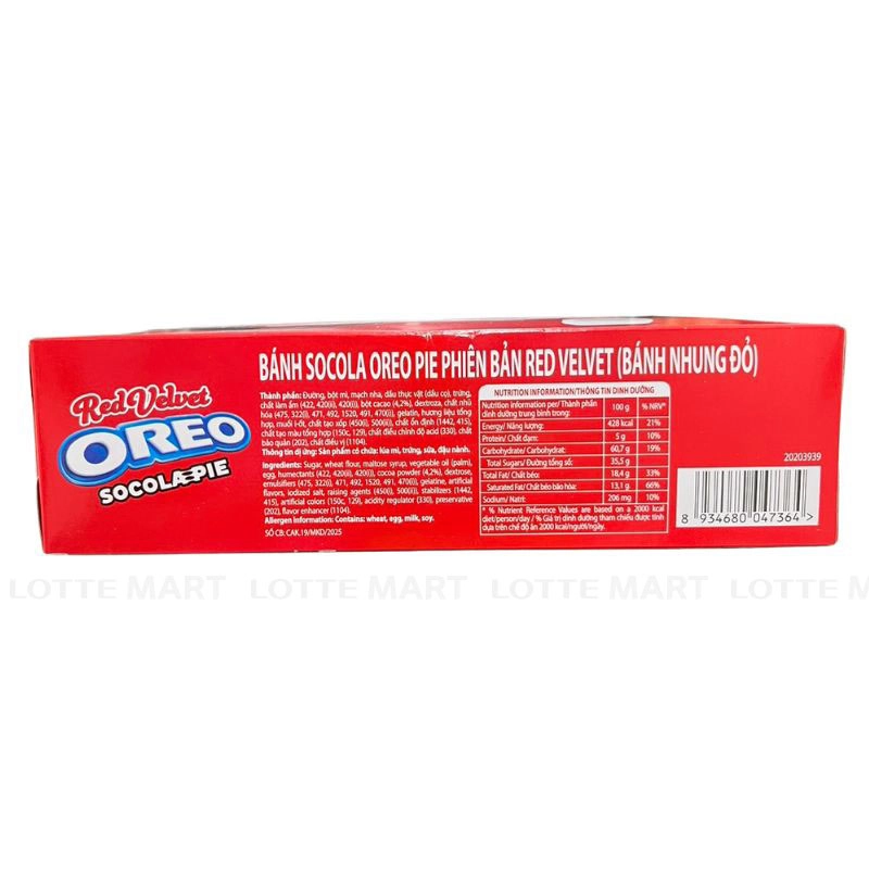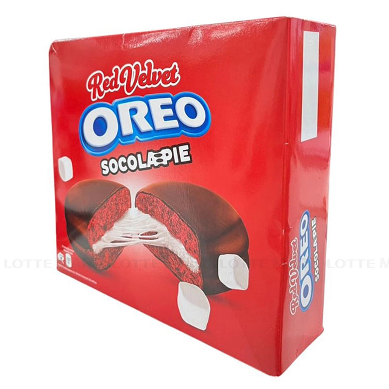 Bánh Oreo Socola Pie Red là phiên bản Red Velvet của bánh Oreo Socola Pie, với hình dáng tròn, nhỏ gọn, được cấu tạo từ hai lớp bánh kẹp lại.