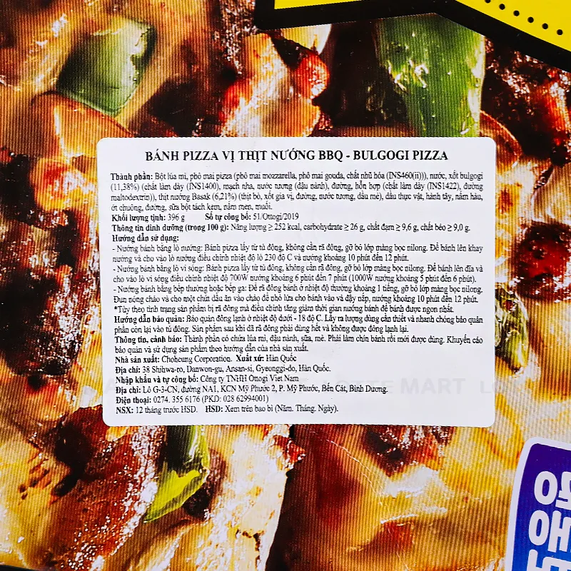 Thành phần: Bột mì, phô mai pizza (phô mai mozzarella, phô mai gouda, chất độn, nước, sốt bulgogi, siro maltose, nước tương, đương, thịt nướng Basak, dầu thực vật,...