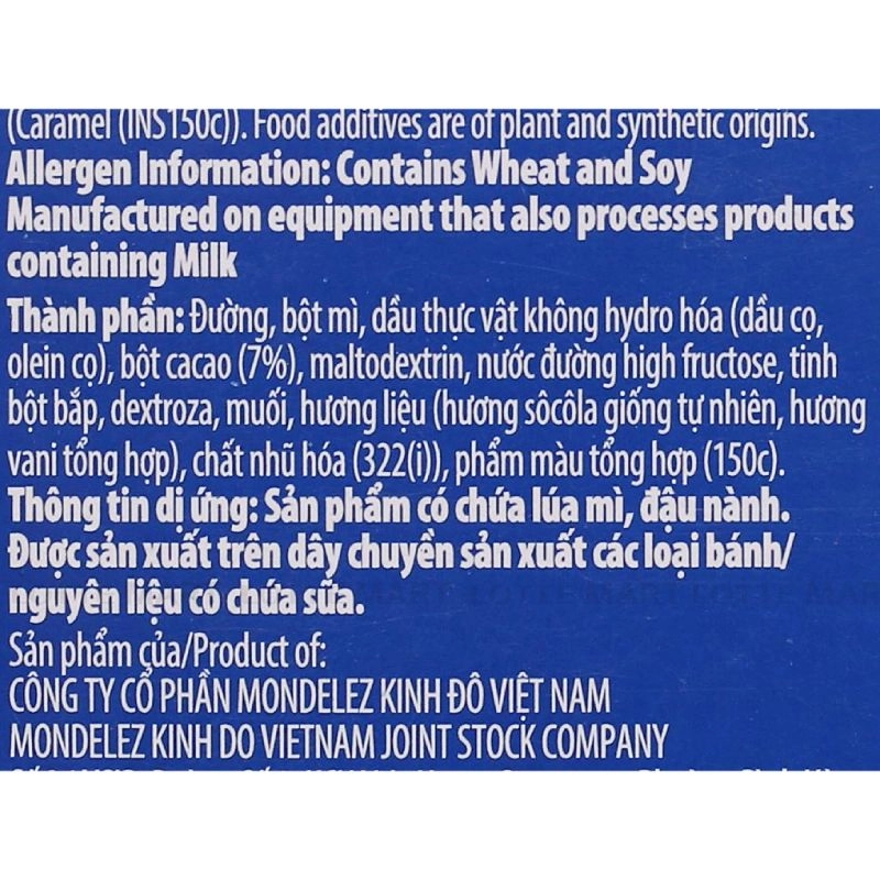 Thành phần: Bột mì, đường, dầu cọ, hương vani, màu thực phẩm tổng hợp, dầu thực vật, bột bắp, bột sữa gầy...