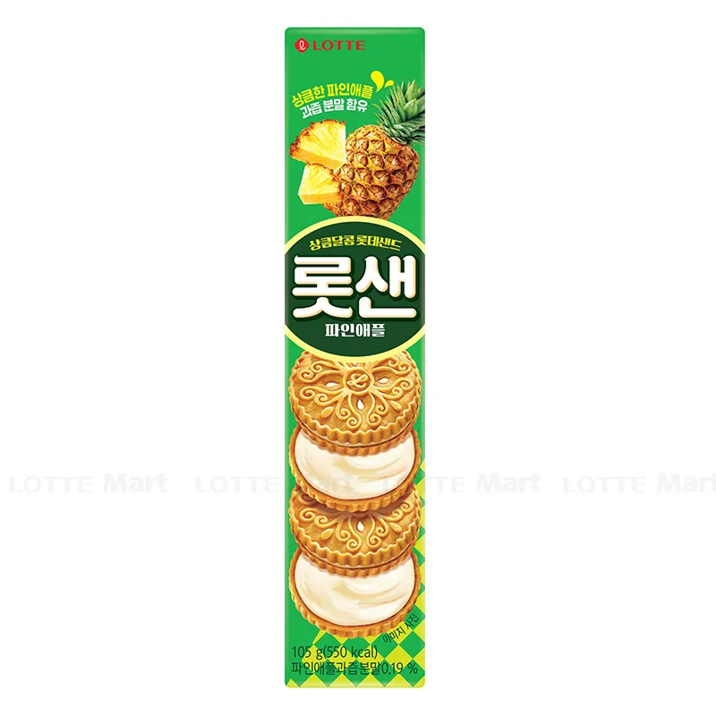 - Bánh Quy Kem Vị Dứa Lotte Sand Hộp 105g có ngọt vừa phải không quá gắt hậu, vỏ bánh giòn rụm kết hợp với lớp nhân kem dứa thơm đặc trưng bên trong, tạo nên một hương vị độc đáo ngon đến khó cưỡng.