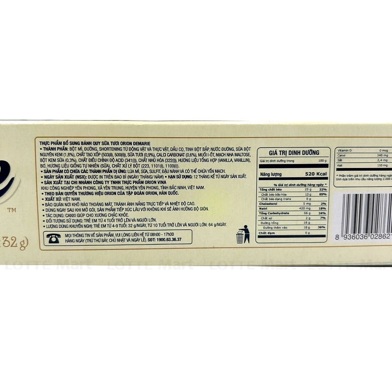 Bánh Quy Sữa De Marie Orion Hộp 384g là dòng sản phẩm của công ty Orion. Một thương hiệu bánh rất được nhiều người tin dùng. Bánh quy sữa De Marie thơm vị bơ sữa, bánh có vị ngọt dịu dễ ăn. Bánh rất giòn và dễ tan khi ngậm trong miệng. Bánh thơm ngon nên được các bé nhỏ yêu thích.