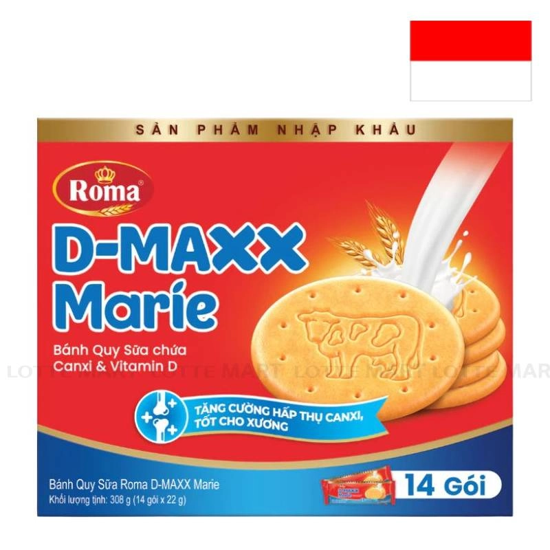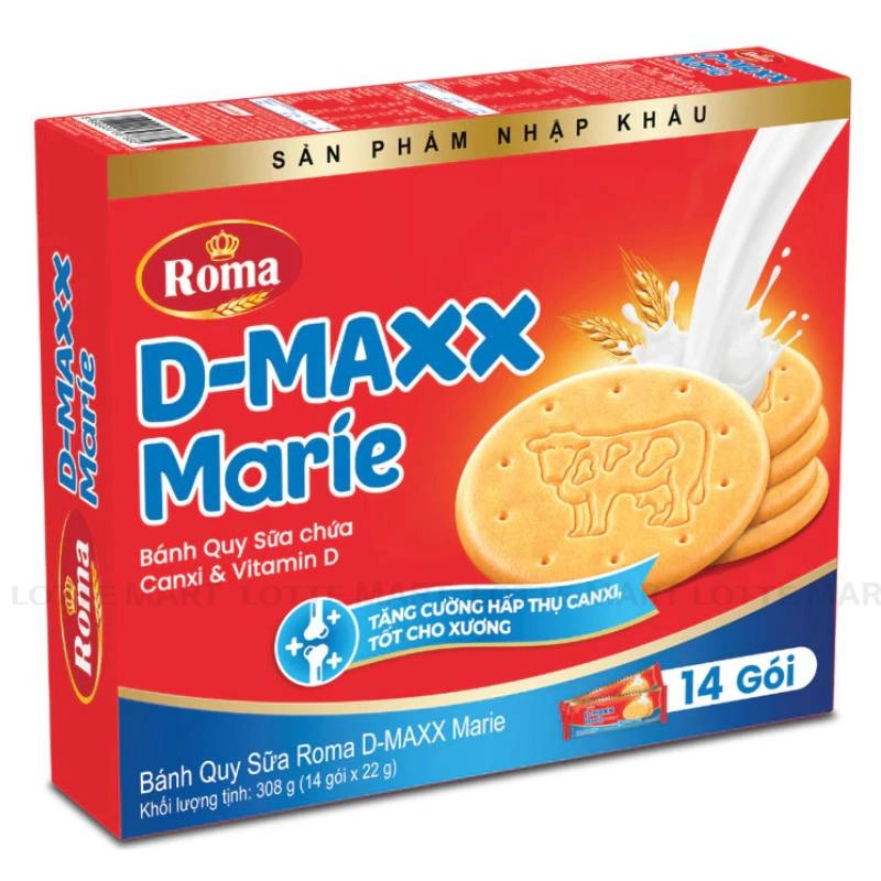 Bánh Quy Sữa Roma D-MAXX Marie Hộp 308G (14 Gói x 22G)
