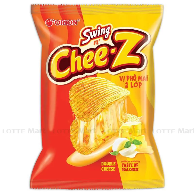 Bánh Snack Khoai Tây Swing Double Cheese - Cú chạm gợn sóng giữa 2 loại phô mai nổi tiếng thế giới. Gấp đôi phô mai, vị ngon gấp bội.
