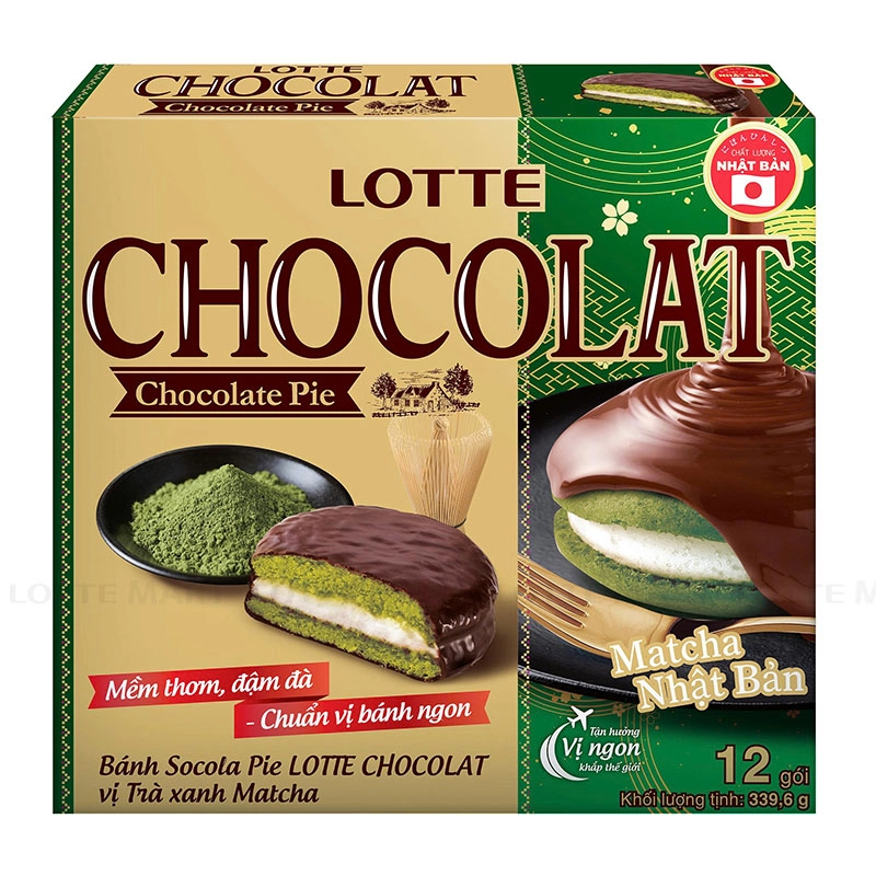 Bánh Socola Pie LOTTE CHOCOLAT Vị Trà Xanh Hộp 339.6G