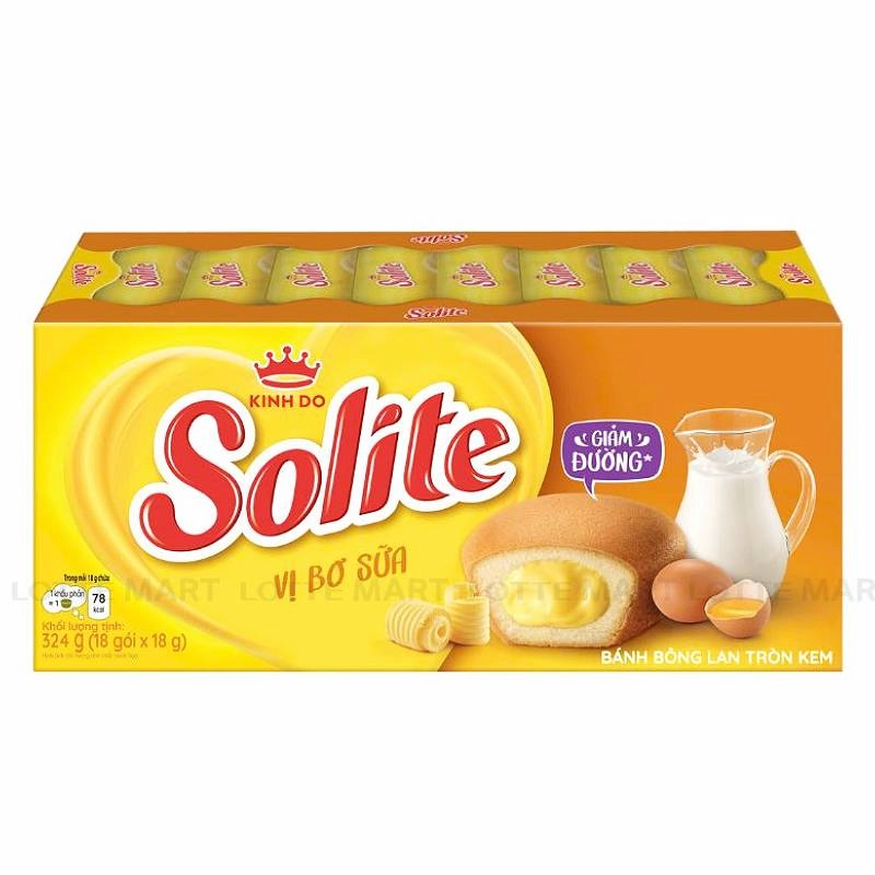 Bánh Bông Lan Tròn Solite Kem Vị Bơ Sữa Hộp 324G (18 Gói x 18G)