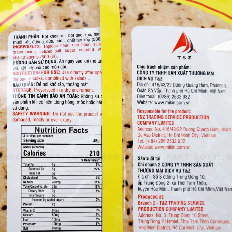 - Bánh Tráng Nướng Mikiri Gói 135G tiện lợi, giòn rụm thơm ngon. Bánh tráng nướng thích hợp là món ăn vặt ngon hoặc kết hợp với các món gỏi. Bánh tráng Mikiri được nhiều người yêu thích và lựa chọn.