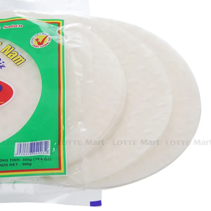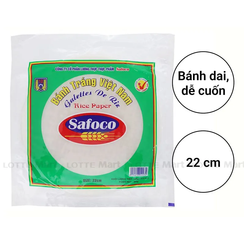 Bánh Tráng Safoco 22CM 500G làm từ bột gạo và bột mì được chọn lọc cẩn thận và sản xuất trên dây chuyền hiện đại khép kín, không sử dụng phụ gia độc hại nên tuyệt đối an toàn với sức khỏe người tiêu dùng.