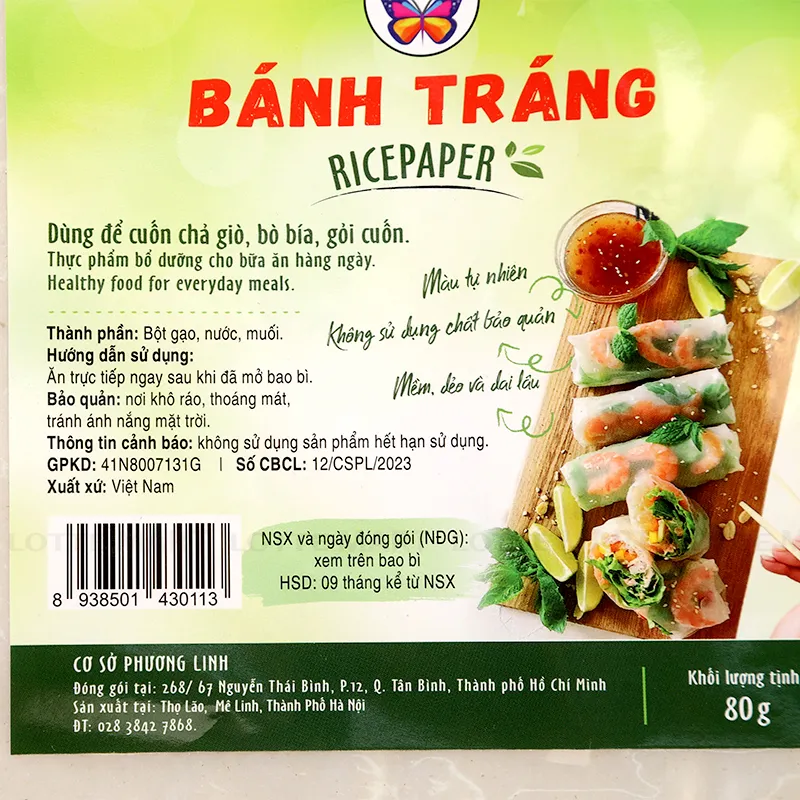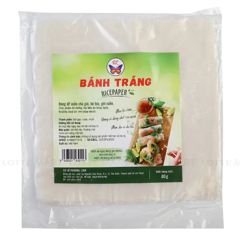 Bánh Tráng Vuông Phương Linh 80G được sản xuất từ những thành phần tự nhiên mang hương vị của đồng quê Việt Nam. Sản phẩm được đóng gói cẩn thận, không chứa chất độc hại, an toàn cho sức khỏe người tiêu dùng. Bánh Tráng Gạo Vuông Phương Linh được làm từ những thành phần an toàn từ tự nhiên với bột gạo nước, muối... hoàn toàn không chứa chất phụ gia, bảo quản, đảm bảo an toàn cho người sử dụng. Sản phẩm được tráng mỏng vừa phải nhưng vẫn đủ độ dai và không bị giòn, cứng khi để lâu. Do đó, bạn có thể dễ dàng sử dụng bánh để cuốn chả giò hoặc các món gỏi thơm ngon cho cả gia đình. Sản phẩm được đóng trong gói nilon kín đáo, hợp vệ sinh, giúp bạn bảo quản sản phẩm dễ dàng trong căn bếp của mình.