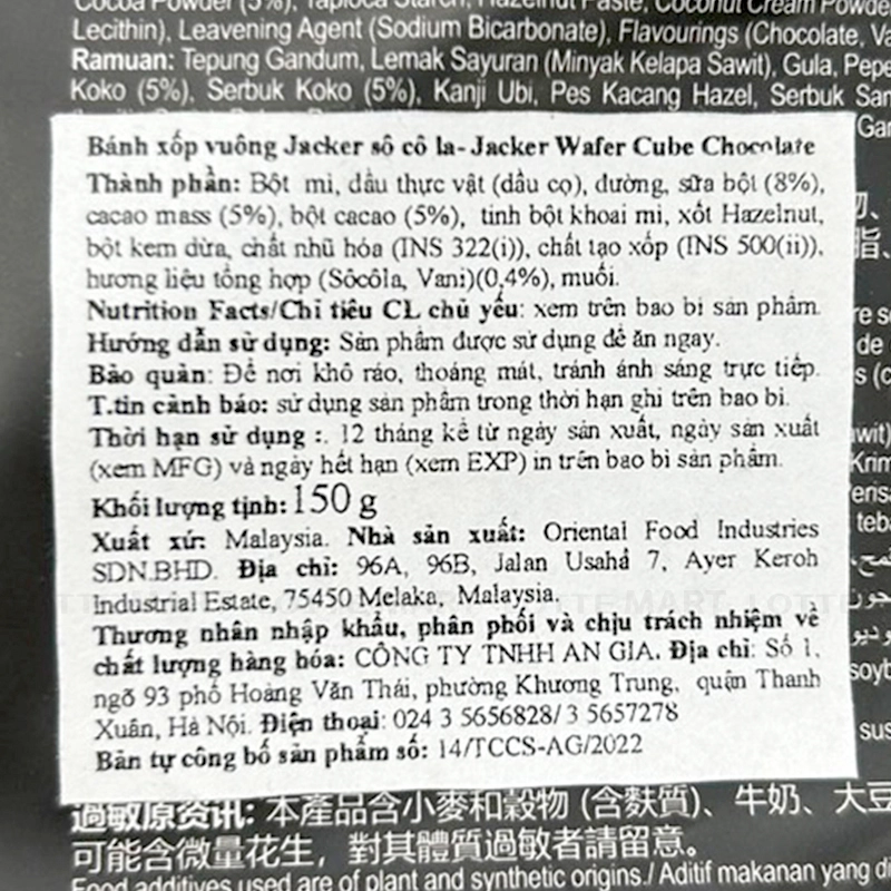 - Bánh Xốp Vị Socola Jacker được làm từ những nguyên liệu cao cấp, được chọn lọc kỹ lưỡng nhằm đảm bảo an toàn cho sức khỏe người tiêu dùng, từ đó tạo nên sự yên tâm khi thưởng thức món ăn vặt hấp dẫn này.
