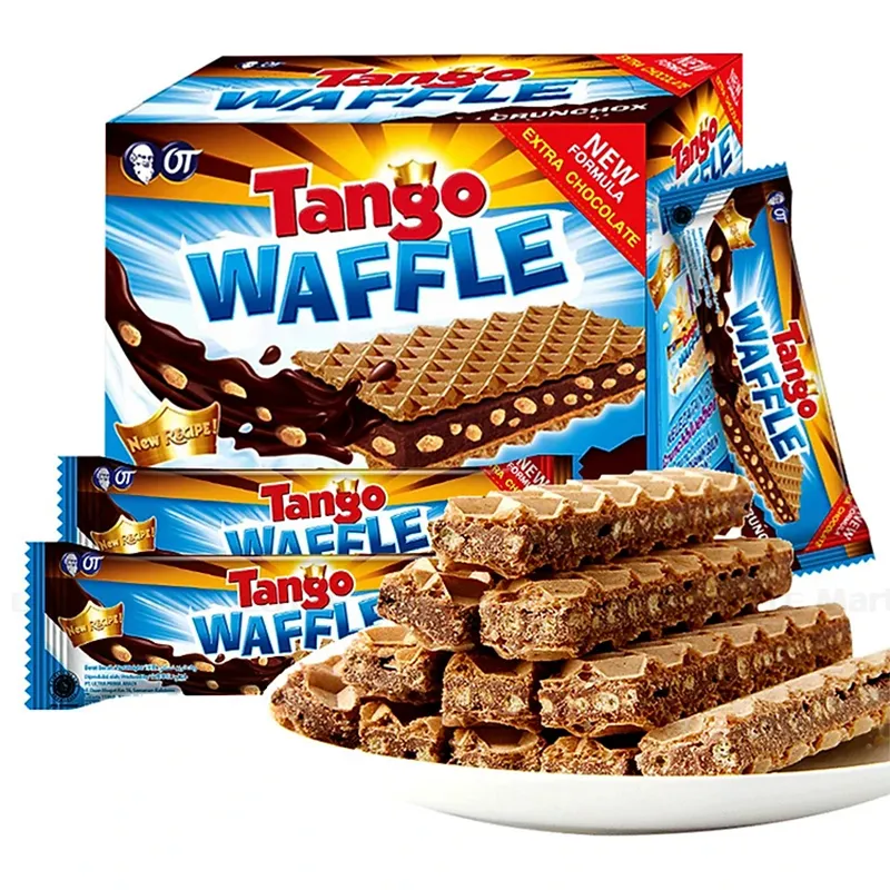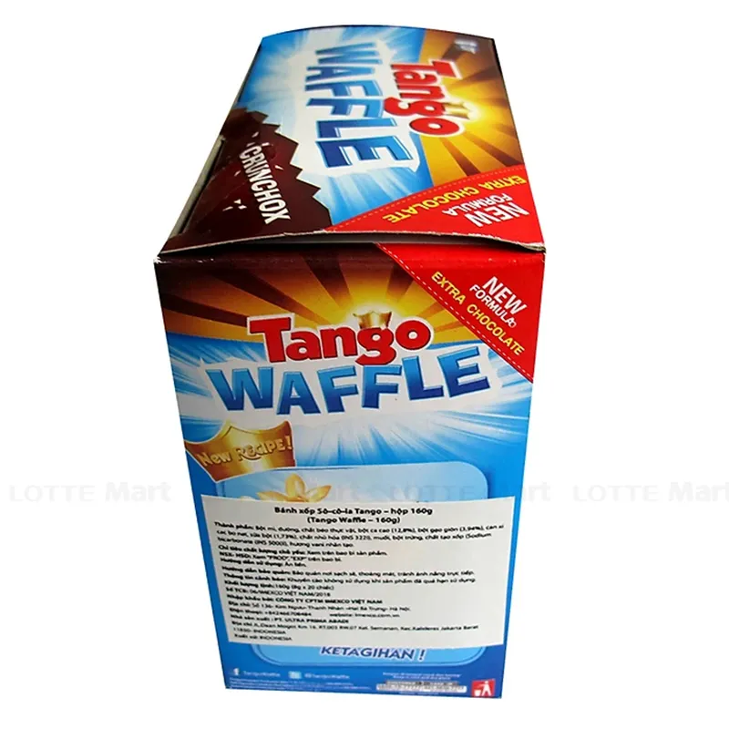 - Bánh Xốp Tango Waffle Socola giòn tan kẹp giữa lớp kem socola sánh mịn cùng lớp gạo rang giúp bánh dày hơn, giòn hơn, cắn đã hơn. Vị ngọt vừa phải, dịu nhẹ, Tango chắc chắn sẽ dễ dàng lấy lòng bất cứ ai.