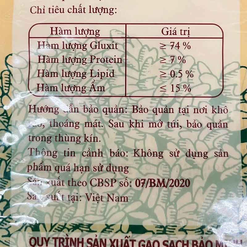 Sản phẩm được sản xuất qua quy trình gạo sạch theo tiêu chuẩn USDA, được giám sát chất lượng bởi Viện Khoa Học Nông Nghiệp Việt Nam, đồng thời được lấy mẫu và chứng nhận bởi trung tâm phân tích & chứng nhận CLSP Nông Nghiệp Hà Nội.