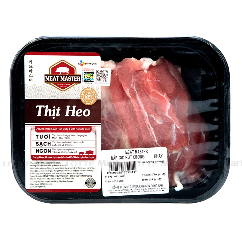 - Bắp giò rút xương Meat Master là phần thịt được lấy từ đầu gối đến phần bắp giò, chứa nhiều thịt nạc ít mỡ.