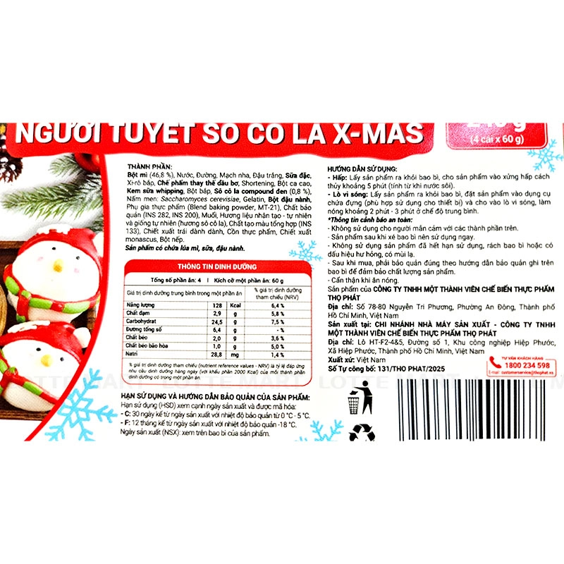 Bánh Bao Tạo Hình Người Tuyết Nhân Socola Thọ Phát 240G