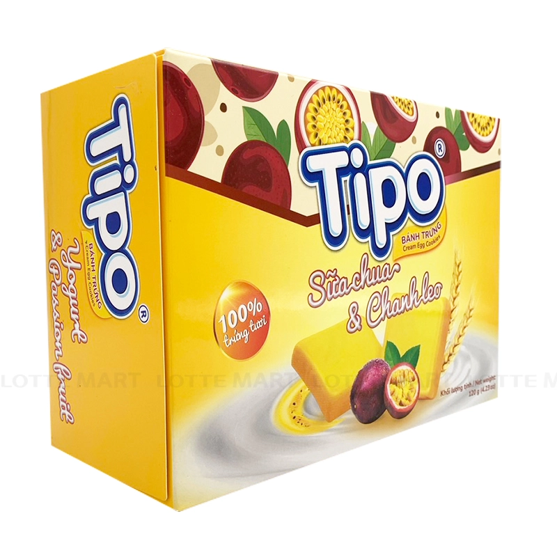 - Bánh Trứng Sữa Chua Chanh Dây Tipo là sản phẩm mới với hương vị độc đáo, kết hợp giữa 2 nguyên liệu tự nhiên gồm sữa chua tươi mát và trái chanh leo miền nhiệt đới. Sản phẩm vẫn giữ được nguyên độ giòn tan đặc trưng của bánh bông lan, phủ lên trên là lớp kem sữa chua và chanh dây mang đến vị chua ngọt tự nhiên ngon khó cưỡng.