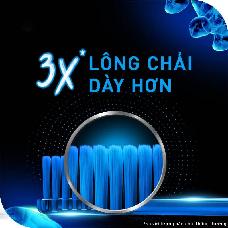 - Lượng lông bàn chải được thiết kế dày hơn gấp 3X để mang lại trải nghiệm chải êm dịu trong khi vẫn làm sạch sâu hiệu quả.