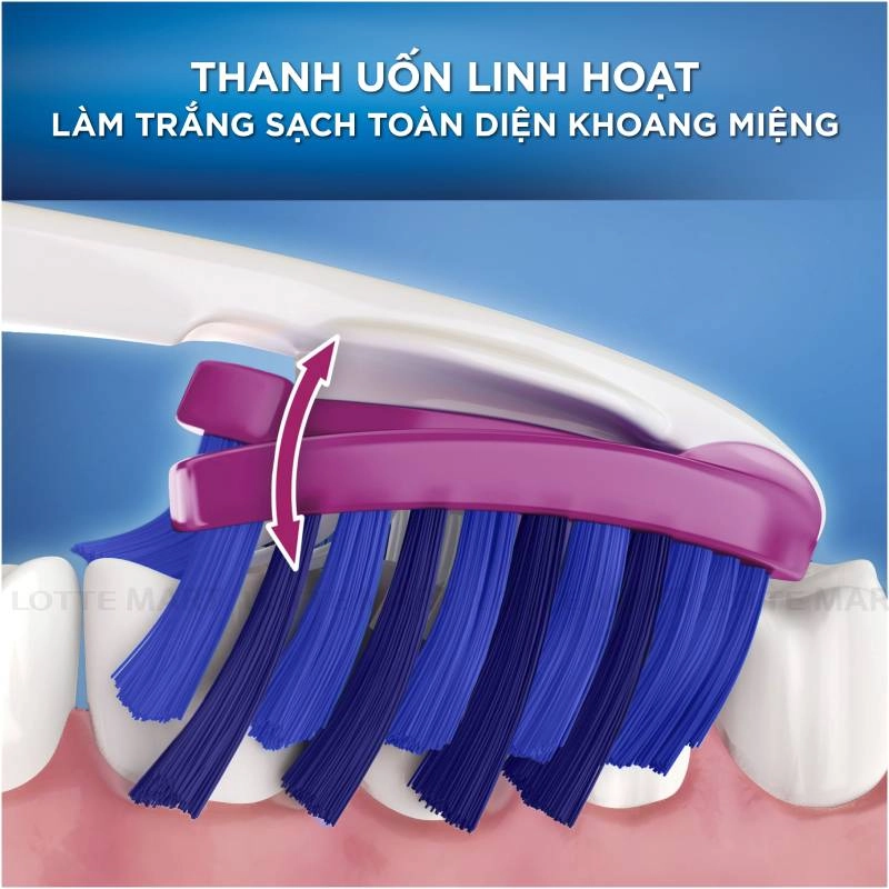 Bàn Chải Đánh Răng Oral B Trắng Sáng 3D với đầu lông bàn chải mềm dễ dàng chải sạch mảng bám và vi khuẩn tận sâu bên trong răng miệng. Cấu trúc lông bàn chải là các sợi chỉ tơ nha khoa siêu mảnh 0.01mm len lỏi vào từng kẽ răng giúp chải răng sạch hơn, massage nướu, lợi, loại bỏ mảng bám cứng đầu, cho bạn hàm răng trắng khỏe.