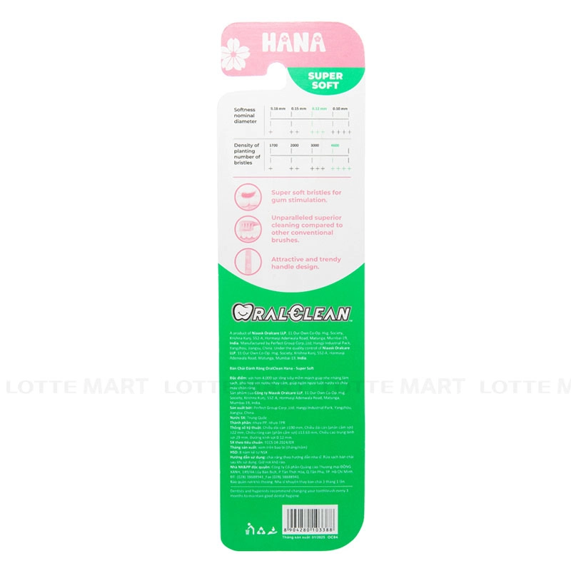 Bàn Chải Đánh Răng Oral Clean Hana Super Soft là lựa chọn lý tưởng cho việc chăm sóc răng miệng hàng ngày. Với thiết kế tinh tế cùng họa tiết hoa xinh xắn, sản phẩm không chỉ giúp làm sạch mà còn mang lại cảm giác dễ chịu và phong cách cho người dùng.