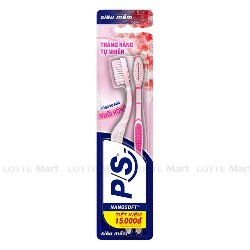 Bộ 2 Bàn Chải Đánh Răng P/S Muối Đá Himalaya Trắng Răng có lông bàn chải được phủ muối muối đá Himalaya tự nhiên 100%, giúp quét sạch vi khuẩn và làm trắng răng một cách tự nhiên.