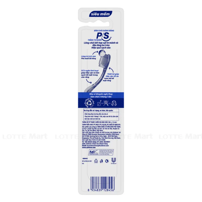 Bàn Chải Đánh Răng P/S Muối Đá Himalaya Trắng Răng với lông bàn chải được phủ muối đá Himalaya tự nhiên 100% giúp làm sạch các mảng bám và thức ăn thừa cùng với muối đá Himalaya giúp răng chắc khỏe. Thiết kế cổ ba ngấn linh hoạt giúp chải sạch những răng trong cùng. Quét sạch vi khuẩn đến tận kẽ răng, giúp răng và nướu sạch khỏe. Giúp răng trắng tự nhiên, mang lại hơi thở thơm mát.