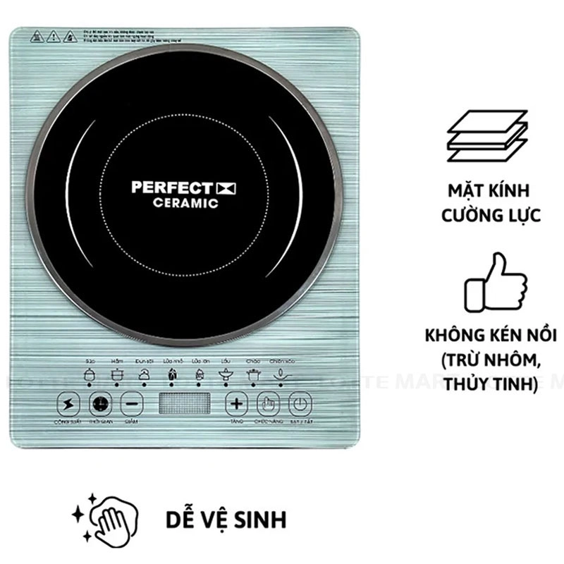 - Bếp Điện Từ Đơn Perferct PF-EC66 thiết kế gọn nhẹ, hiện đại với màu sắc hài hòa, mặt kính Ceramic cao cấp chịu lực và dễ lau chùi.