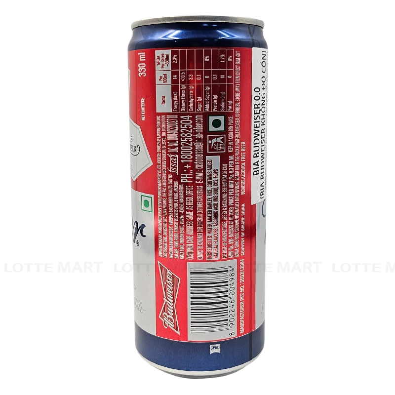 Bia Budweiser Không Độ Cồn 0.0% ABV Lon 330ml
