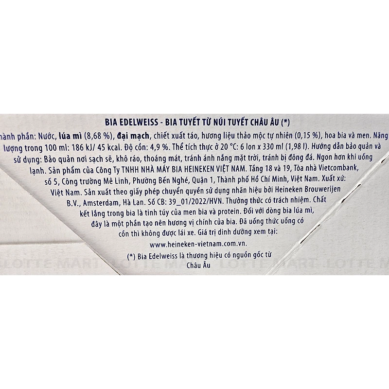 - Bia Tuyết Edelweiss là dòng bia lúa mì cao cấp mang cảm hứng từ dãy An-Pơ, được hoàn thiện dựa trên kinh nghiệm ủ bia truyền thống lâu đời.