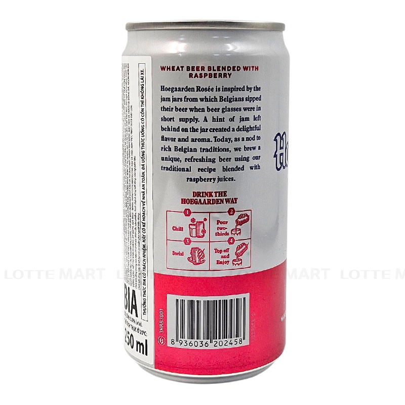 - Với nồng độ cồn chỉ 3% ABV cùng thiết kế lon nhỏ gọn tiện lợi, Hoegaarden Rosée phù hợp để phù hợp cho các bữa tiệc, buổi gặp gỡ hoặc những khoảnh khắc thư giãn cuối ngày.