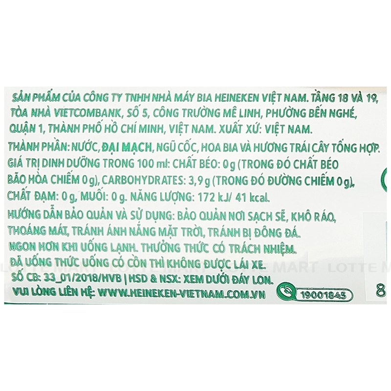 Thành phần: Nước, đại mạch, ngũ cốc và hoa bia