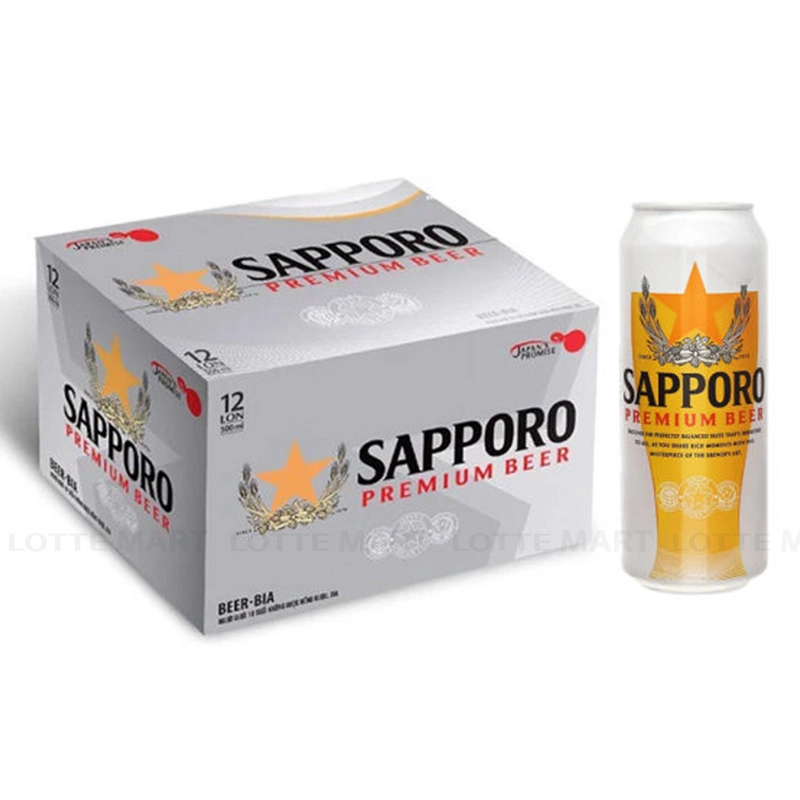 Thùng 12 Lon Bia Sapporo Premium 5% ABV 500Ml