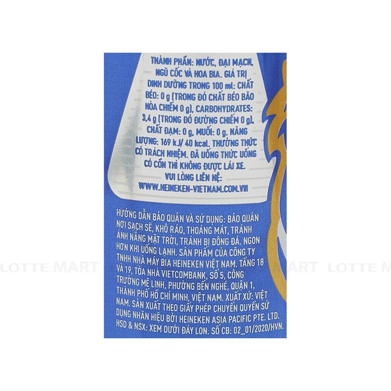 Thành phần: Nước, Đại mạch, Ngũ cốc, Hoa bia.