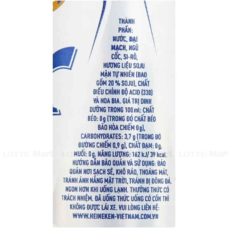 Thành phần: Nước, đại mạch, ngũ cốc, siro, hương liệu soju mận tự nhiên (bao gồm 20% soju), chất điều chỉnh độ acid và hoa bia...