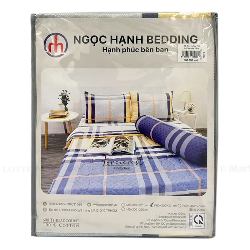 Bộ Drap Cotton Ngọc Hạnh Bedding 160 x 200 x 27cm
