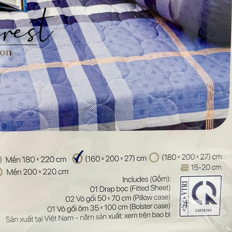 - 2 vỏ gối nằm 50x70 (cm).