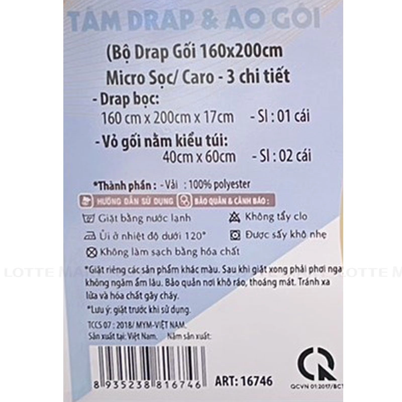 - Bộ Drap Gối Micro Sọc/Caro Mym 3 Chi Tiết là sản phẩm chăn ga gối phù hợp cho nhu cầu sử dụng hàng ngày, mang đến sự gọn gàng và tiện lợi cho không gian phòng ngủ. Sản phẩm được thiết kế với kích thước 1.6x2m, phù hợp với nhiều loại nệm phổ biến.